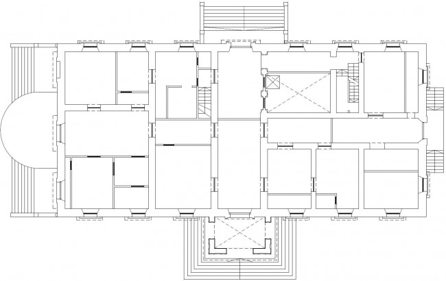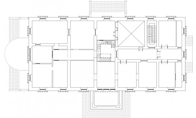 Il piano primo, di circa 540 m², con un'altezza interna di 4,8 m, comprende un grande appartamento con corridoio centrale, saloni, salotti, cucine, camere da letto, studi e servizi igienici. Una terrazza di circa 40 m², situata sulla facciata principale, offre una vista incantevole sul parco.