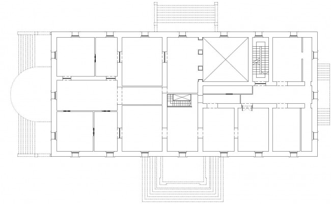 Il piano secondo, di circa 540 m², ha un'altezza interna di 3,3 m e ospita un ampio appartamento con corridoio centrale, bagni, saloni, salotti, cucine, camere da letto, studi e servizi igienici, oltre al vano scala centrale.