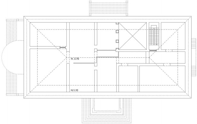 Il piano terzo sottotetto, di 540 m² totali, di cui 336 m² con altezza praticabile, è composto da diverse soffitte con pendenze interne e travatura a vista.