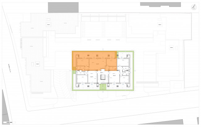 Il complesso residenziale è circondato da un incantevole giardino interno, con piante su tutte le balconate e logge esterne, con irrigazione gestita da un sistema centrale a accumulo di acqua. Realizzato in classe energetica NZEB (Near Zero Energy Building), l'edificio è progettato per consumi energetici prossimi allo zero, grazie all'impianto fotovoltaico da 44 kW e soluzioni innovative come il cappotto esterno e l'ottimizzazione dell'irraggiamento naturale.