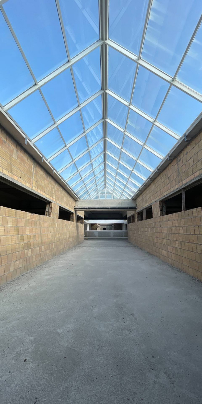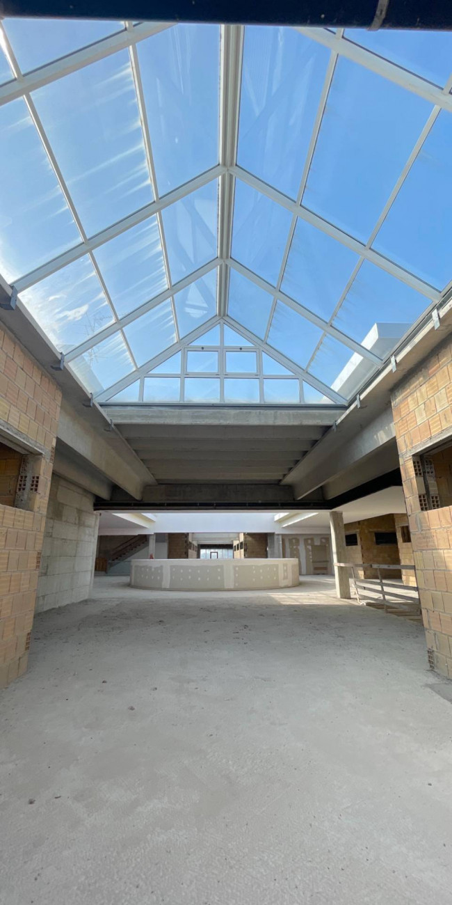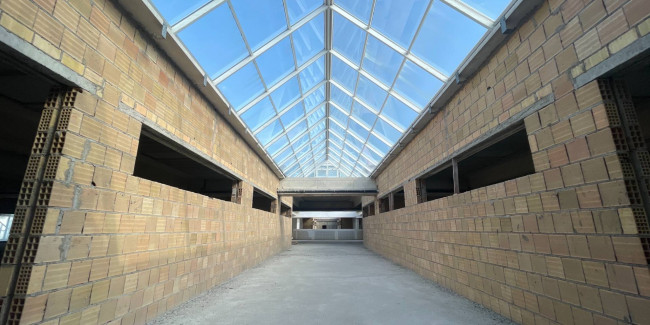 L'unità immobiliare, attualmente allo stato grezzo avanzato, è costituita da diversi lotti modulabili, con ingressi indipendenti e collegati da ampi corridoi centrali. Esternamente l'edificio è già ultimato e dotato di ampie vetrate; all'interno sono presenti alcuni divisori, ma mancano ancora le rifiniture, i massetti, le pavimentazioni e gli impianti.