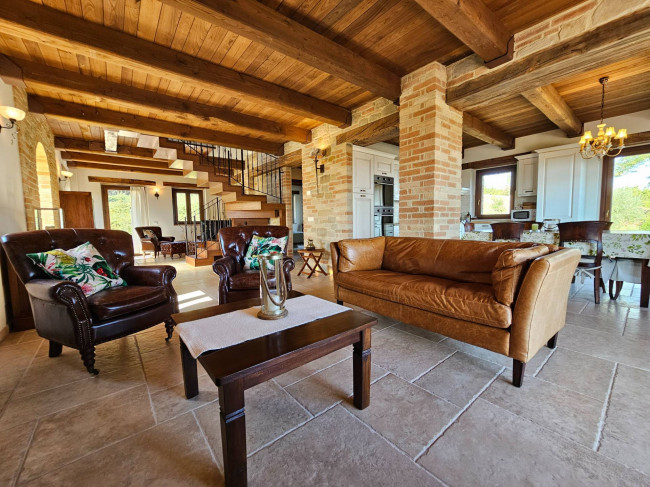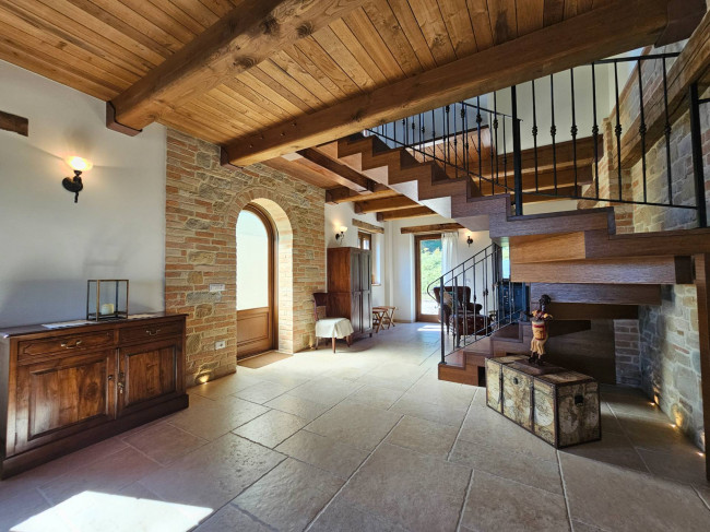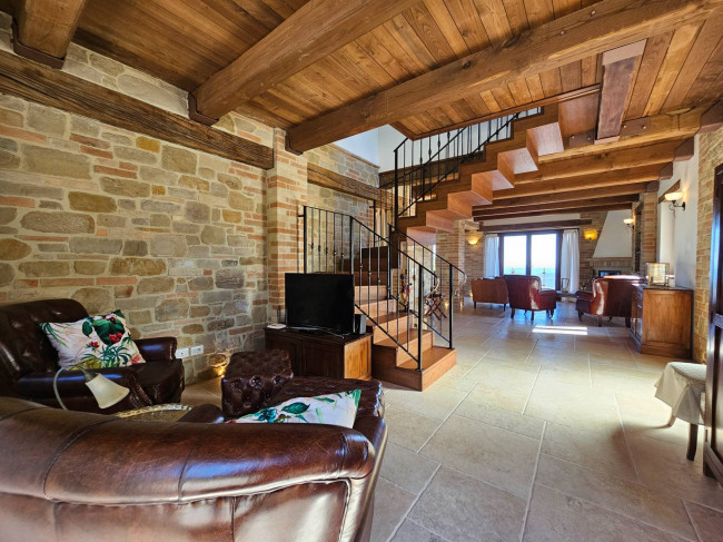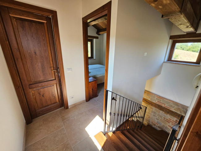 Il casale, rivestito in pietra e mattoni, completamente anti sismico si sviluppa su tre piani ed è stato progettato per sfruttare al meglio ogni suo spazio.