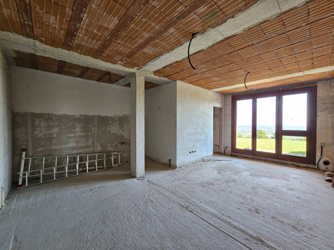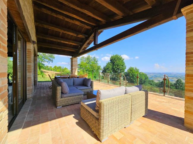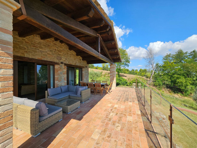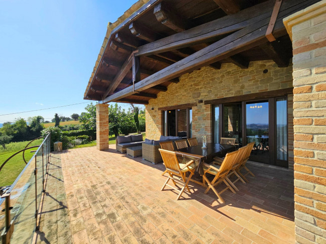 A soli 500 metri dal bellissimo centro storico di Loro Piceno, sulle dolci campagne marchigiane, fantastico casale di nuova costruzione in Vendita di circa 215 mq.