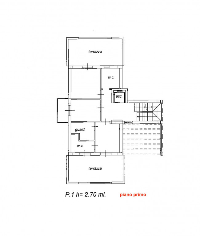 Salendo al primo piano, anch'esso di circa 70 m², si incontra la zona notte composta da tre camere da letto, di cui due matrimoniali e una singola. La camera padronale è dotata di bagno en suite, mentre un ulteriore bagno serve il piano. Gli ambienti sono completati da due terrazzi abitabili per complessivi 30 m² e da un balcone centrale che impreziosisce la facciata. Al secondo piano, troviamo invece il sottotetto, circa 30 m² da adibire a locale polifunzionale, arricchito da una splendida terrazza perimetrale di 48 m² con gazebo, ideale per momenti di relax all'aperto.