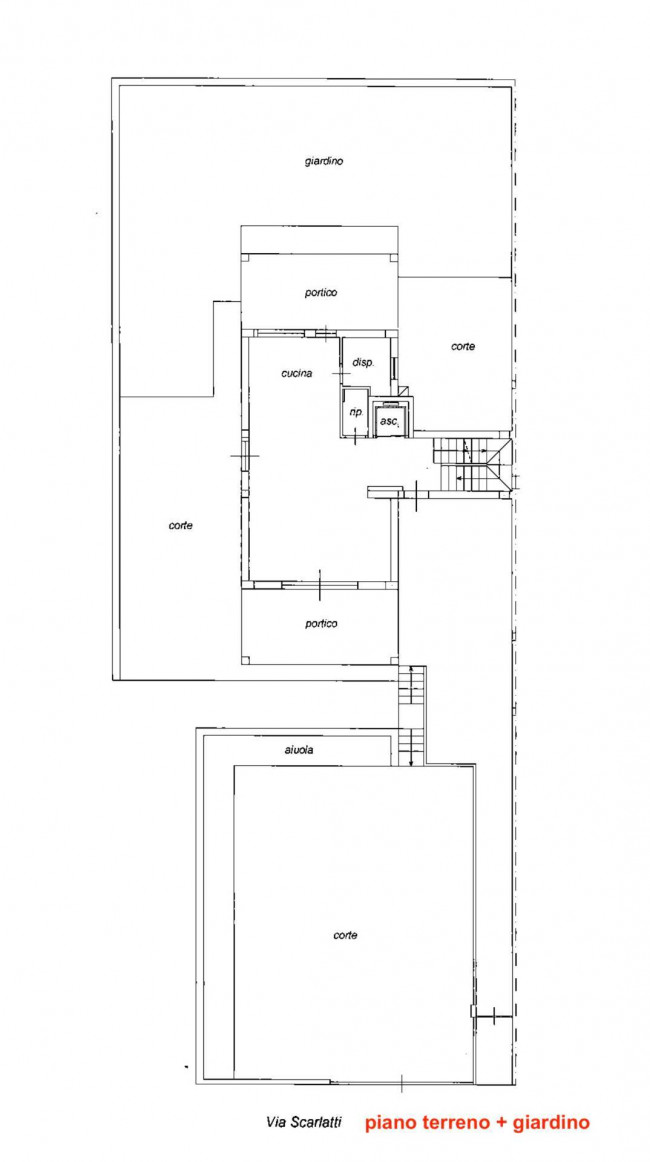 La proprietà si sviluppa su quattro livelli, collegati anche da un comodo ascensore interno. Al piano seminterrato, di circa 185 m², si apre una luminosa e accogliente taverna con cucina, affiancata da tre ampie stanze, due bagni finestrati, un garage capace di ospitare due autovetture e un corridoio con scala di accesso ai piani superiori. Il piano terra, di circa 70 m², è dedicato alla zona giorno, con un ingresso che conduce a un salotto spazioso e luminoso, una cucina abitabile con dispensa e un bagno di servizio. All'esterno si trovano due porticati di oltre 30 m² e un magnifico giardino di circa 433 m², in parte allestito a verde con prato all'inglese e palme ad alto fusto, in parte pavimentato e organizzato come parcheggio privato per quattro autovetture.