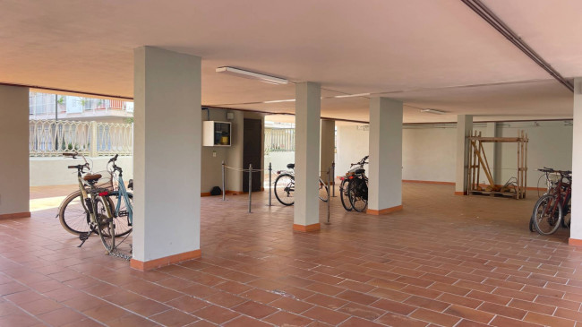 La proprietà comprende inoltre una piccola cantina privata al piano terra ed un ampio spazio coperto ad uso esclusivo per il ricovero di moto e biciclette, situato nel colonnato della palazzina.