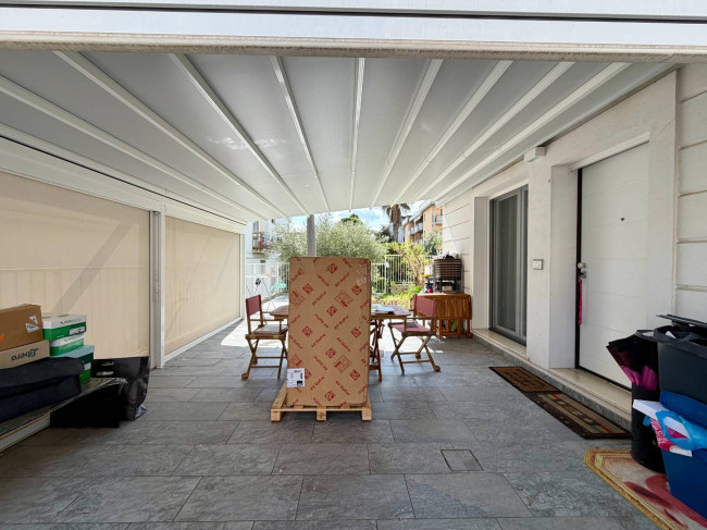 A San Benedetto del Tronto, proponiamo in Vendita un Appartamento trilocale di 65 mq circa posto al piano terra di una piccola palazzina completamente ristrutturata. Internamente l' immobile è composto da: ingresso su soggiorno con cucina a vista, due camere da letto, (una matrimoniale ed una singola) e un bagno finestrato con box doccia. L'Appartamento risulta avere ingresso autonomo. La corte esterna, di circa 130 mq, è suddivisa tra giardino piantumato e area attrezzata pavimentata. La privacy nei momenti conviviali all'esterno viene garantita da una spaziosa pergotenda motorizzata che consente di soggiornare all'aperto per gran parte dell'anno. Una piccola cantina al piano terra, di circa 4 mq, completa la proprietà. L'alloggio si presenta in ottime condizioni grazie alla recente ristrutturazione. Il portone d'ingresso è blindato, gli infissi sono in pvc con vetro doppio, il riscaldamento è autonomo con sistema radiante a pavimento e sono presenti condizionatori caldo/freddo e zanzariere. Ubicato nella splendida zona residenziale di Santa Lucia, questa residenza rappresenta il giusto connubio tra tranquillità e vicina ai principali servizi ed al mare.