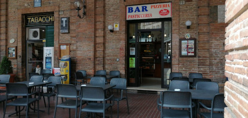 Pizzeria, pasticceria, bar, completa di attrezzature e arredamento, in ottimo stato, suddivisa in laboratorio di circa 30 mq, spazio interno per clientela di circa 20 mq ed esterno, coperto e contornato dal loggiato della Piazza, di circa 60 mq.