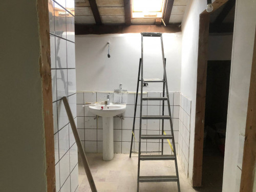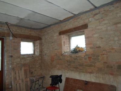 Casale colonico dislocato su tre livelli, composto da piano terra di mq 140 circa, suddiviso in tre ampi vani, a destinazione stalla, cantina, magazzino, piano primo della stessa metratura, a cui si accede tramite scala interna: spaziosa cucina abitabile, soggiorno con camino, disimpegno, bagno, tre camere di cui una con servizi interni; secondo piano, di pari dimensioni, mansardato, abitabile nella parte centrale, è suddiviso in quattro locali, di cui uno con bagno interno. Giardino retrostante l'immobile di circa 200 mq.